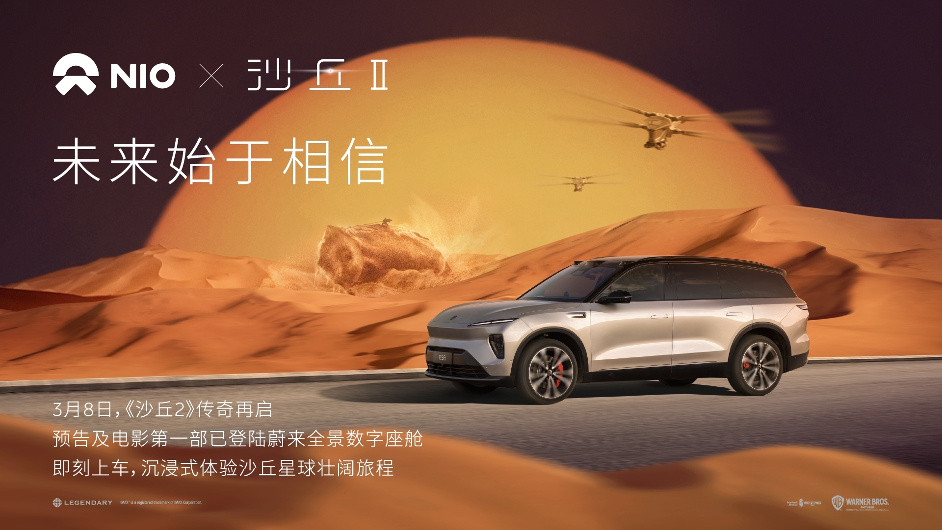 3月8日科幻巨制《沙丘2》已正式登陆国内各大院线,蔚来受邀作为电影官方汽车合作伙伴,以“未来始于相信”为主题开启联合宣发。为此蔚来准备了一系列精彩活动内容,「NIO沉浸声」上线杜比全景声原声大碟、牛屋「沙漠之灵」特饮、45座《沙丘2》电影主题换电站、NIO Life联名限定巨能装折叠整备箱等等。