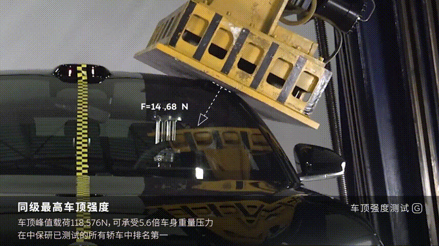 - 中保研顶压测试成绩中排名第一,118,576N同级最高的车顶强度