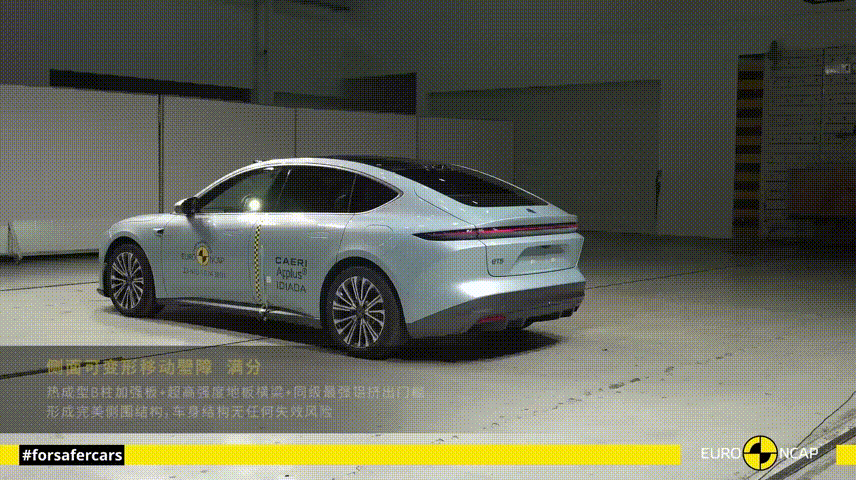 ET5在侧面柱碰、侧面可变形移动壁障测试中均获得满分成绩,侧碰中的远端乘员也受到了全方位保护。