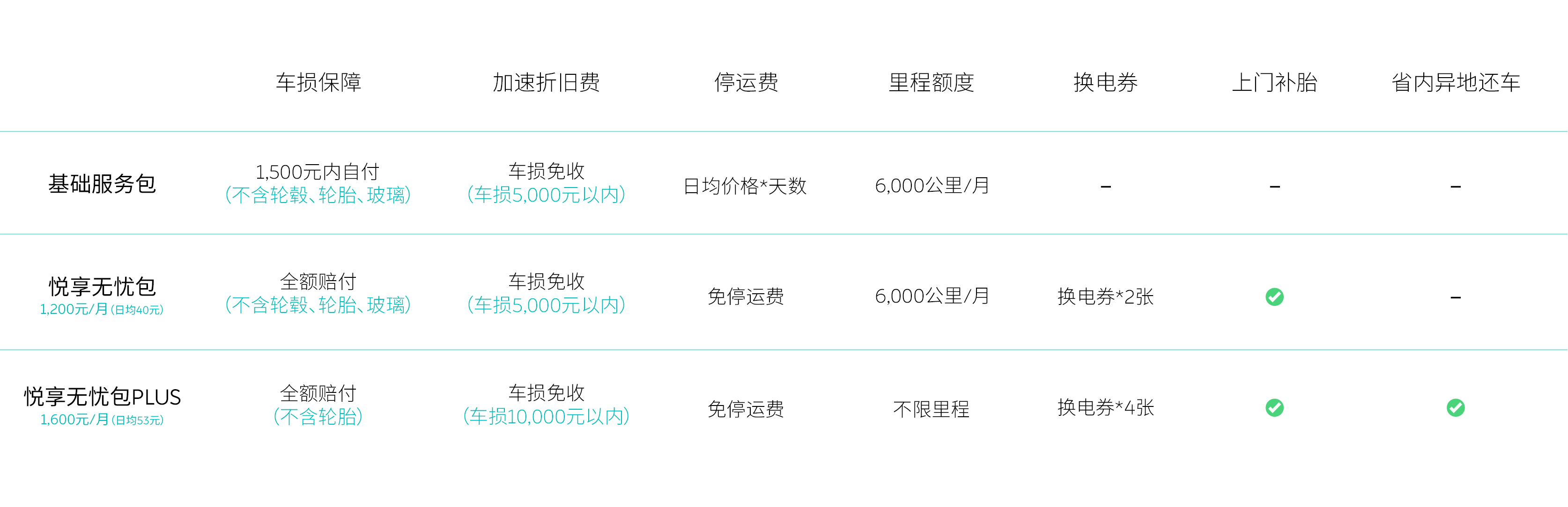 悦享出行提供全面的订阅权益,包括免费保养和年检、免费道路救援、免费车联网等。