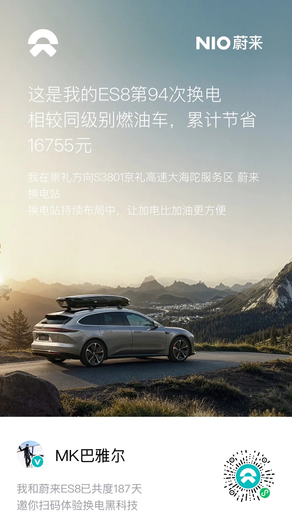 蔚来ES8老车主已经5-6年没为补能焦虑